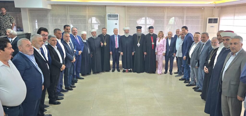 كرم عضو تكتل “لبنان القوي” النائب أسعد درغام مفتي عكار الشيخ زيد بكار زكريا، وراعي أبرشية عكار وتوابعها للروم الأرثوذكس المتروبوليت باسيليوس منصور، في حفل غداء وطني جامع أقامه في مطعم “غرين لاند” في عدبل ــ عكار بحضور، النواب: محمد يحي، جيمي جبور، سجيع عطية، والنواب السابقين: طارق المرعبي، مصطفى علي حسين، جمال إسماعيل، وكريم الراسي، محافظ عكار المحامي عماد لبكي، رئيس أساقفة طرابلس المارونية المطران يوسف سويف، راعي أبرشية طرابلس للروم الملكيين الكاثوليك المطران إدوار ضاهر، رئيس دائرة الأوقاف الاسلامية في عكار الشيخ مالك جديدة، الشيخ حسن حامد، النائب الأسقفي الماروني في عكار المونسنيور إلياس جرجس، وأعضاء اللقاء الروحي، مدير عام أمن الدولة اللواء الركن إدوار لواندس ممثلا بالمدير الاقليمي لأمن الدولة في عكار العميد جان فنيانوس، العضوين السابقين في المجلس الاسلامي الشرعي الأعلى النقيب محمد المراد، والأستاذ علي طليس، مدير عام التعليم الابتدائي جورج داوود، رئيس المنطقة التربوية في الشمال نقولا خوري، رئيس دائرة التعليم المهني في عكار ورد الورد، عضو المجلس السياسي في تيار المستقبل خالد طه، عضوي المجلس السياسي في التيار الوطني الحر وليد الأشقر، وأحمد سويد، منسق البلديات في التيار روجيه باسيل، منسق التيار في عكار علاء مخول، رؤساء اتحادات بلديات: الدريب الشمالي ميشال عبدو، والدريب الغربي جان جلول، ونهر الأسطوان عمر الحايك، الشفت أنطون عبود، وادي خالد خالد البدوي، وعدد كبير من الكهنة ورجال الدين ورؤساء البلديات والفاعليات السياسية والاجتماعية والحزبية والاقتصادية والنقابية والاعلامية.بداية، النشيد الوطني اللبناني، وكلمة ترحيبية من الاعلامي منذر المرعبي أكد فيها على أهمية المناسبة المتزامنة مع عيد الجيش، شاكرا درغام على اللفتة التكريمية لشخصيتين مميزتين وقامتين دينيتين تشكلان صمام أمان العيش الواحد في عكار.ثم ألقى النائب أسعد درغام كلمة أشار فيها الى أننا نُكرّمَ رجلينِ نذرَا حياتَهما لخدمةِ الإنسانِ والكلمةِ والحقِ، فكانا مرجعيةً وركيزةً ليس فقط لطائفتِهما، بل لكلِ أبناءِ هذه المحافظة وللبنان.وقال درغام: سيادةَ المطران باسيليوس منصور الذي يُجسّد بإيمانهِ وتواضعهِ معاني الأبوةَ الروحيةَ الصادقة، وسماحةَ المفتي زيد بكار زكريا الذي نعتزُّ بعلمهِ واعتدالهِ وانفتاحهِ، وبدورهِ الوحدوي الجامع في تعزيزِ الحوارِ والحفاظِ على العيشِ المشتركِ في أصعبِ الظروف.وأضاف: أما المناسبةُ الثانية، فهي انتخابُ المجالسِ البلديةِ الجديدة في عكار، وهي محطةٌ ديمقراطيةٌ نأملُ أن تكونَ بدايةً لمسارٍ إنمائيٍ وإداريٍ جديد، يُعيدُ الاعتبارَ للبلدياتِ كأداةٍ فعليةٍ للتنميةِ المحلية، ويمنحُ أبناءَ كل بلدةٍ وقريةٍ حقَهم في التمثيلِ والخدمةِ والقرار.وتابع: هنا أوجهُ دعوةً صادقةً الى رؤساءِ البلدياتِ ومجالسِها بأن يبذلوا قصارىَ جَهدهِم في إظهارِ الصورةِ المشرقةِ لبلداتِهم ونحنُ ندركُ جميعاً أن الدولةَ غيرَ قادرةٍ على تمويلِ المشاريعِ لكن ذلك لا يمنع أن نُشددَ على ضرورةِ تعميمِ النظامِ والتنظيمِ وبعضِ الأنشطةِ التي لا تحتاجُ الى إمكانياتٍ كبيرةٍ لكنها تُحدثُ الفرقَ المطلوب.. لتكن عكارُ درةً على خارطةِ لبنانَ السياحيةِ والثقافيةِ.وقال درغام: لقد أثبتت الأيامُ أن عكارَ، رغمَ الحرمانِ والإهمالِ، قادرةٌ أن تُنتجَ رجالَ دولةٍ، ورجالَ دينٍ، وقاماتٍ وطنيةٍ، وهي اليومَ بأمسِّ الحاجةِ إلى أن نستثمرَ في وحدتِها، وتكاملِ مكوناتِها، لنُحصّنَها من الفتنِ، ونمنحَها ما تستحقُ من رعايةٍ واهتمام. وأكد درغام على أن هذا اللقاءُ ليس مناسبةً عابرةً بل هو دعوةٌ صادقةٌ للتلاقي المستمر، وبناءِ شراكةٍ بين المرجعياتِ الروحيةِ والسياسيةِ والبلديةِ، لنؤسِسَ معًا لنموذجً عكاريً يُحتذى بهِ في المسؤوليةِ والتعاونٍ والانماءِ.المفتي زيد بكار زكرياثم ألقى مفتي عكار الشيخ زيد ب